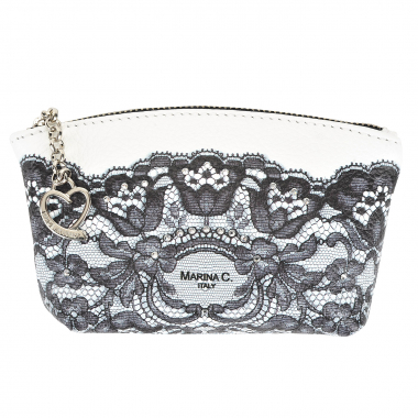 Кожаная косметичка с кружевом и стразами