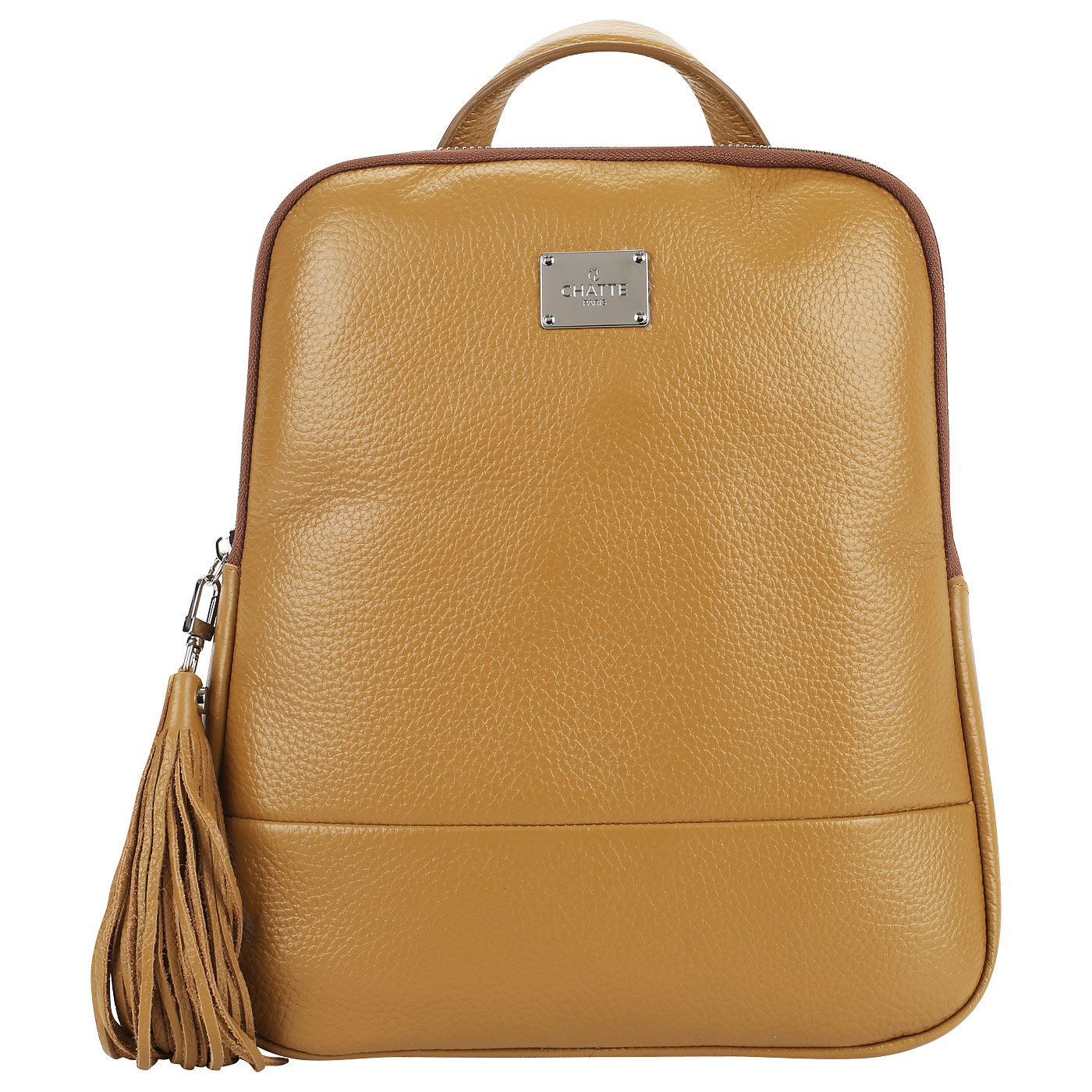 Оригинальный городской рюкзак с лаконичным экстерьером отличается практичностью дизайна и стильным внешним видом. Желтая модель из мягкой натуральной кожи снабжена регулируемыми плечевыми лямками и верхней ручкой для переноски. Внутреннее пространство дополняют два открытых кармана и карман на молнии. Рюкзак застегивается на молнию и дополнен съемным брелоком-кисточкой.
