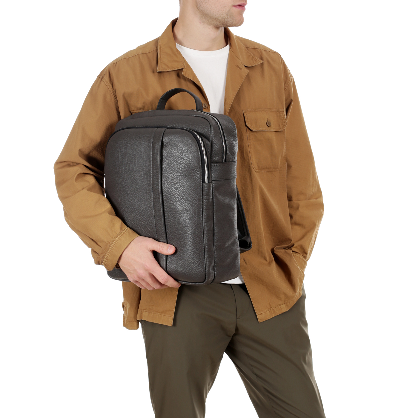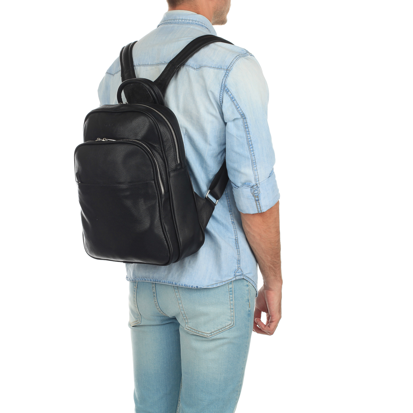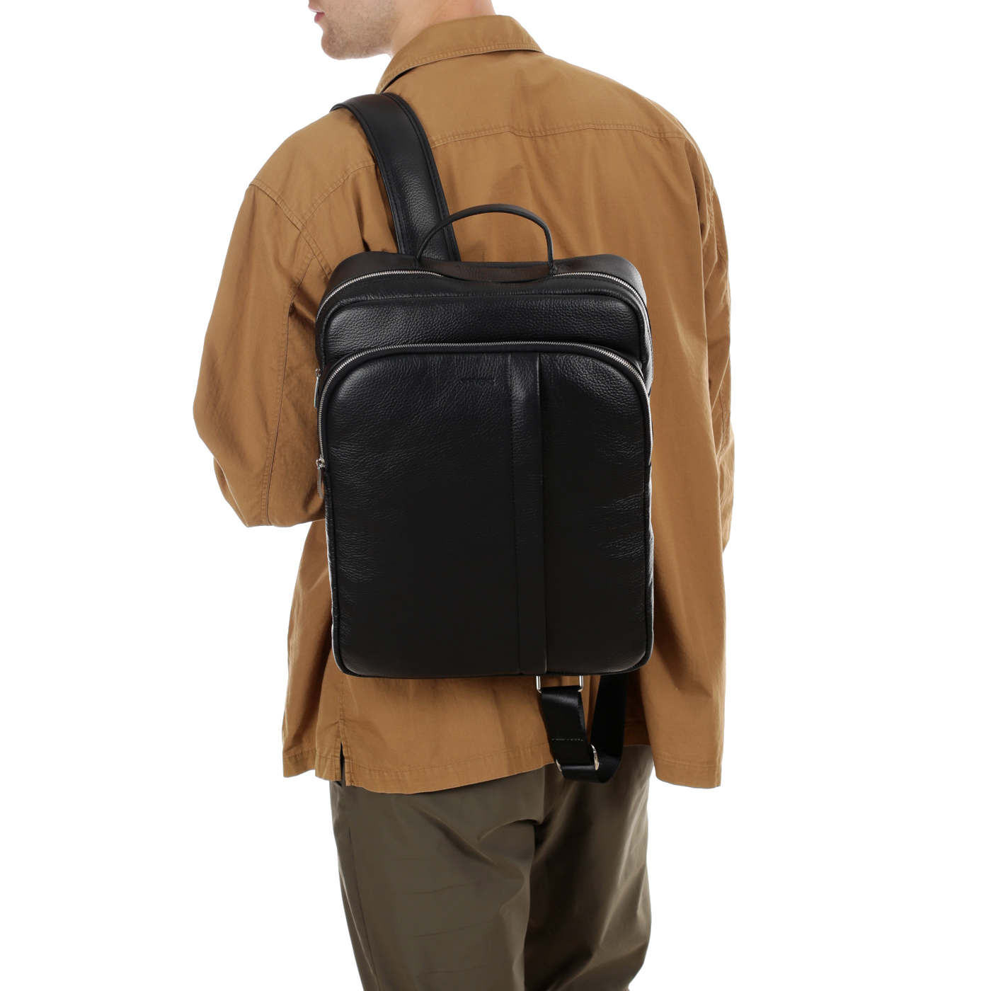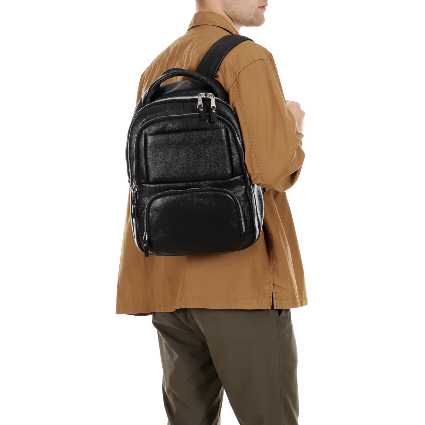 Кожаный мужской рюкзак на двойной молнии