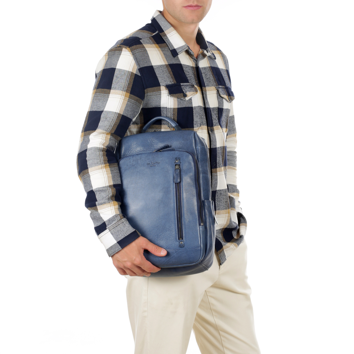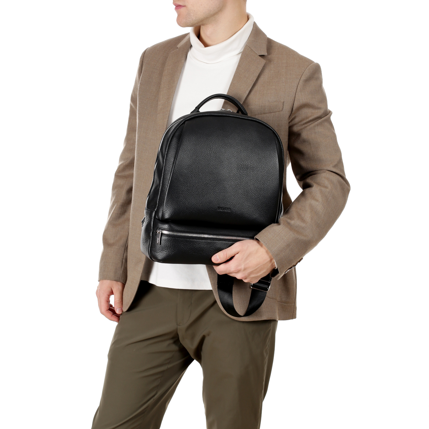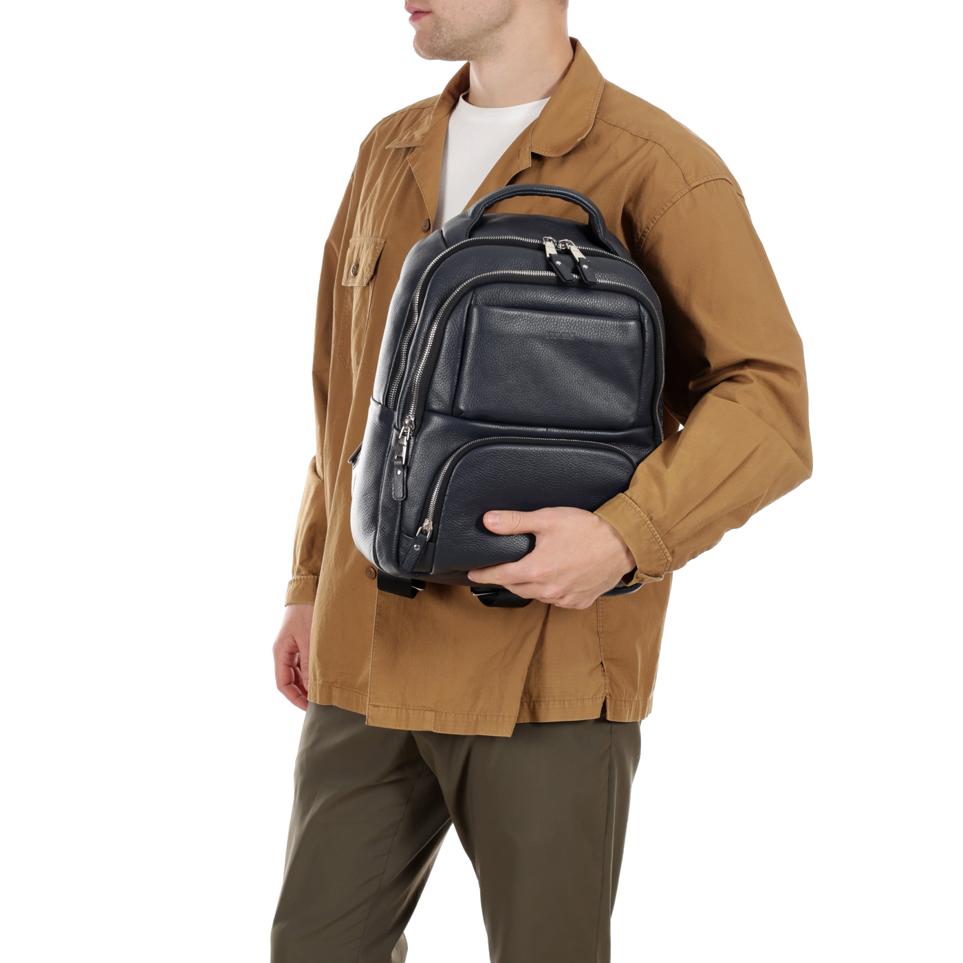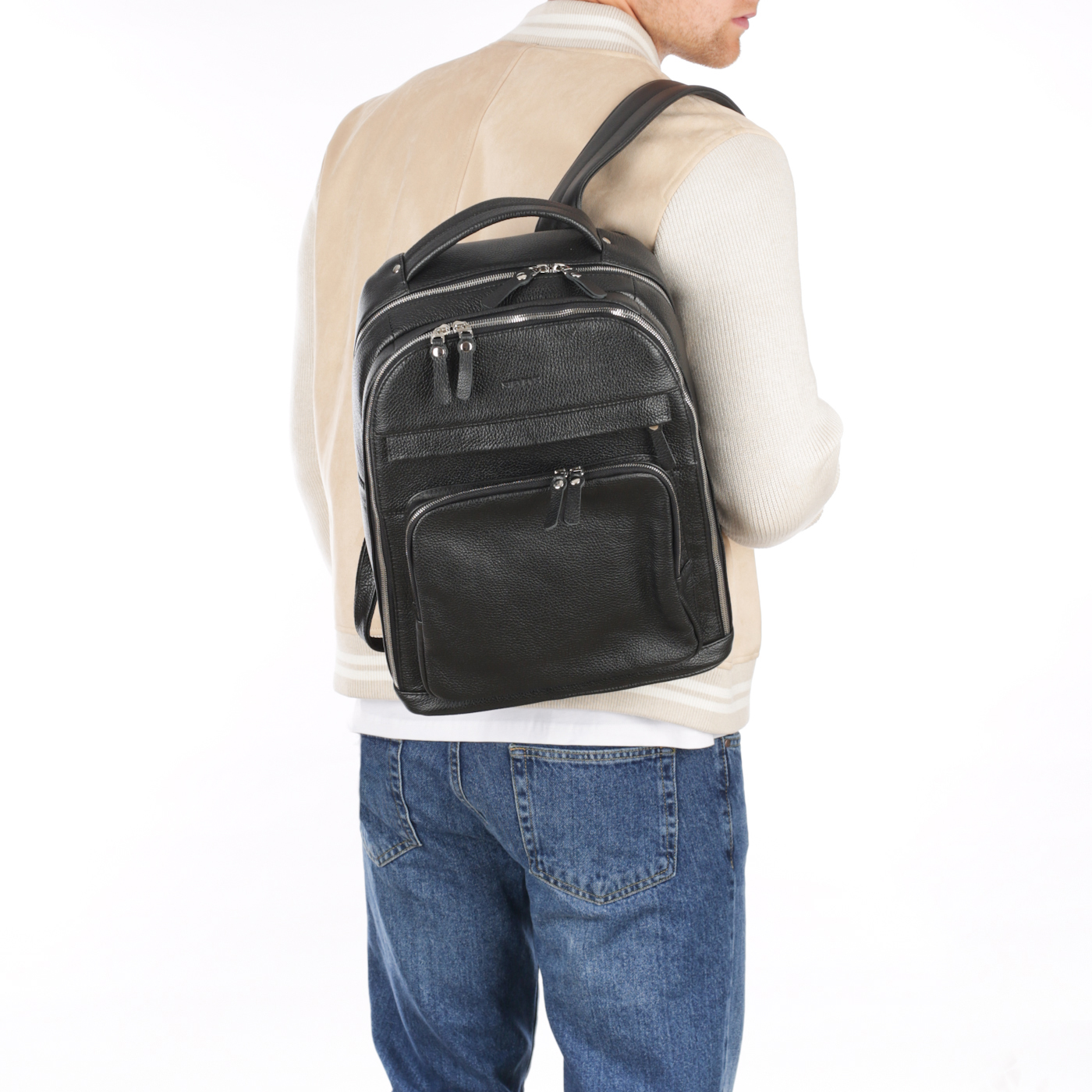Кожаный мужской рюкзак на двойной молнии