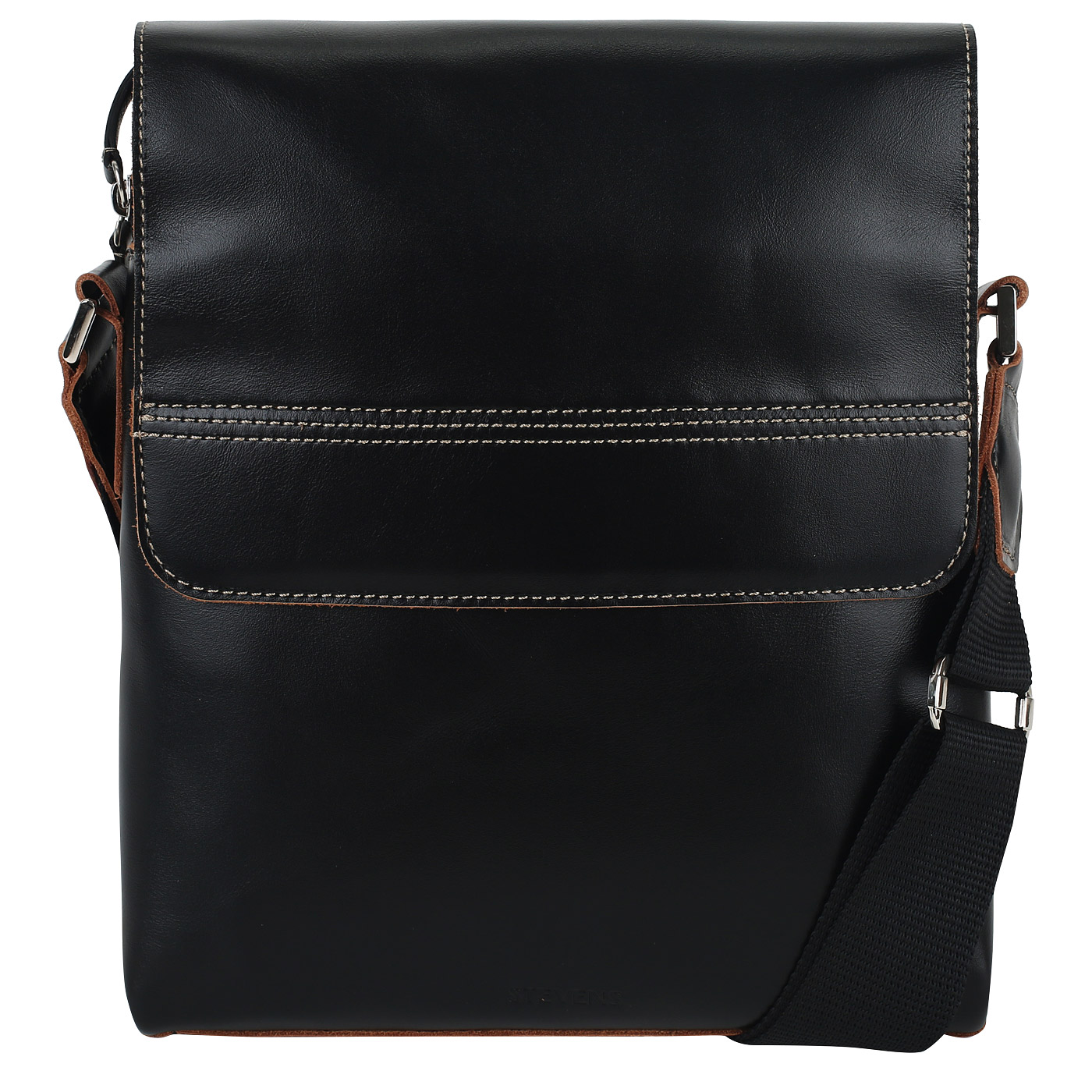 Кожаная сумка через плечо Stevens AS361S/TX01_pc - 2000558470629 черный натуральная кожа 24 x 28 x 6 Цена 17480 руб. купить в интернет-магазине PanChemodan.ru в Москве
