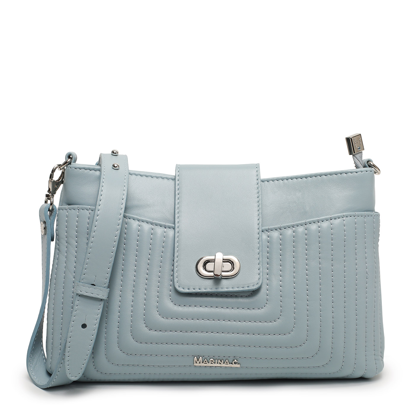 Сумка через плечо Marina Creazioni TRP217 760 7067_cielo_pc - 2000558770194 голубой натуральная кожа 25,5 x 17 x 6 Цена 9990 руб. купить в интернет-магазине PanChemodan.ru в Томске
