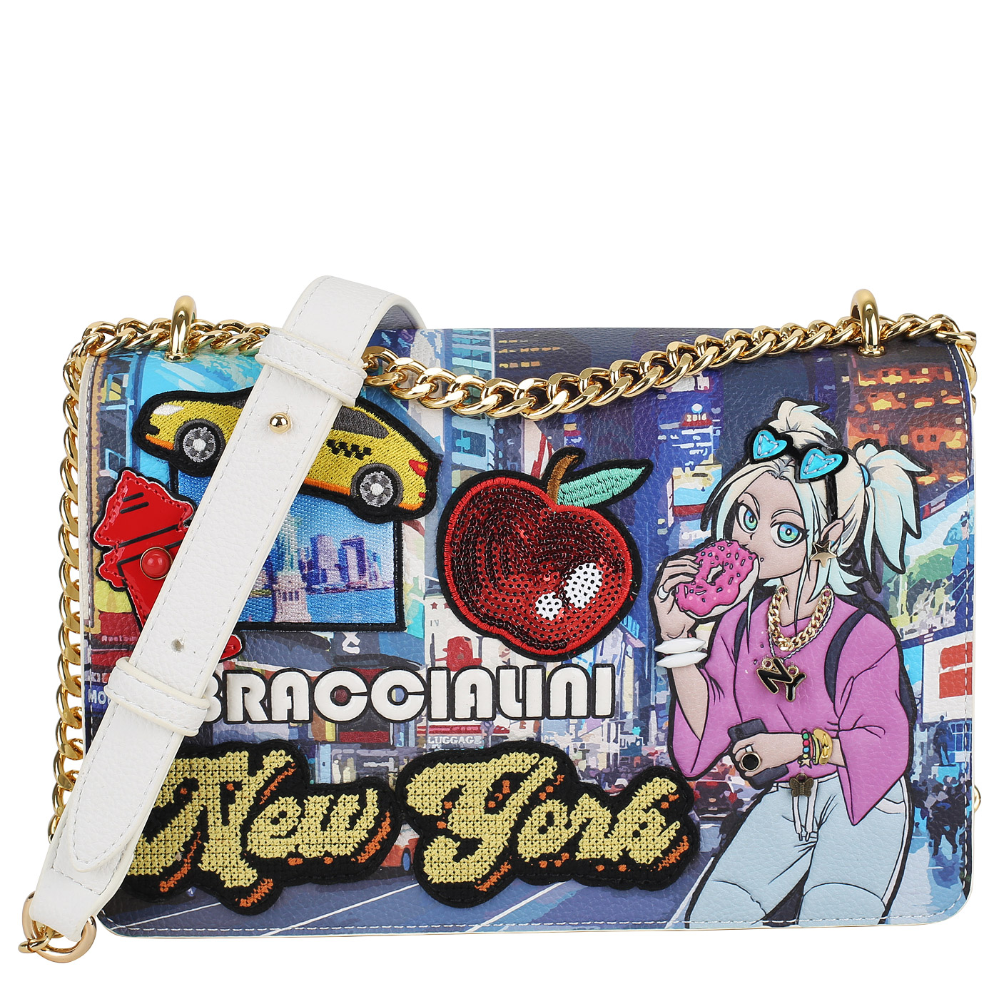 Сумка через плечо с цепочкой Braccialini Cartoline B17625-YY_unico_pc - 2000558657228 мульти полиэстер, полиуретан 26 x 17 x 10 Цена 20340 руб. купить в интернет-магазине PanChemodan.ru в Москве